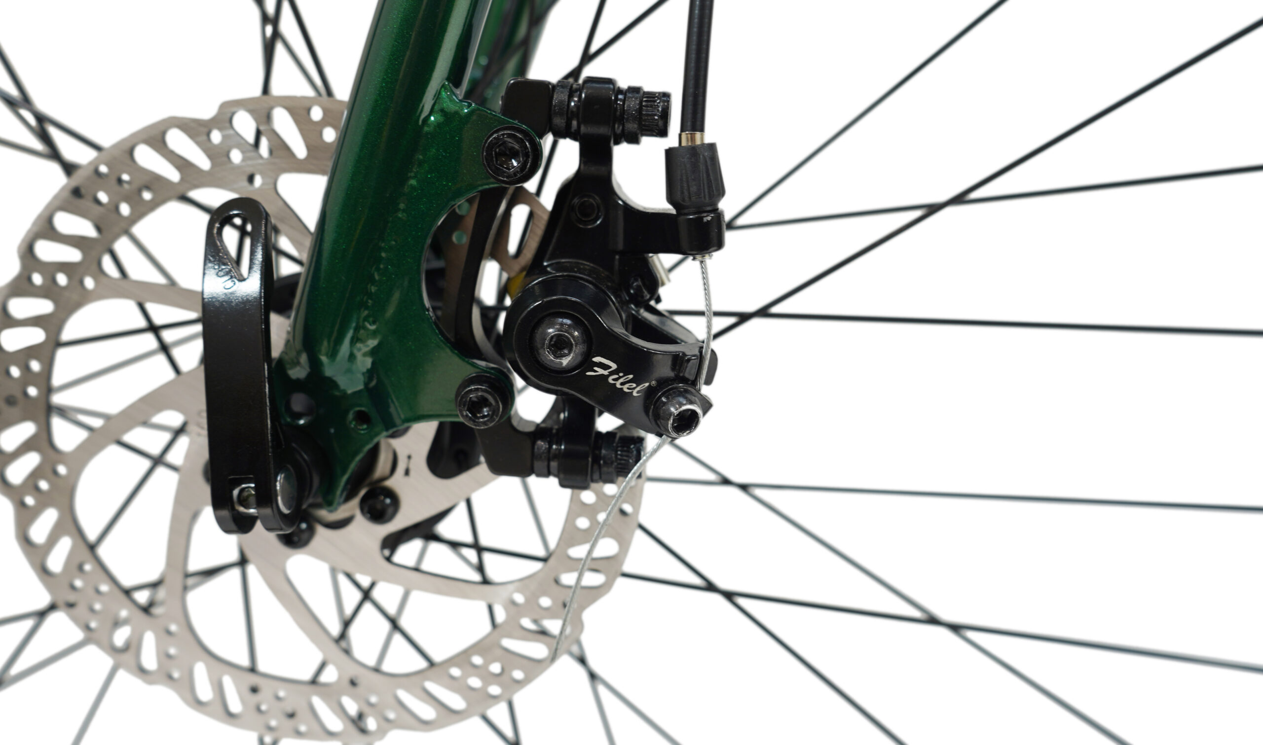 ハードな走りにも応える制動力のディスクブレーキを装備